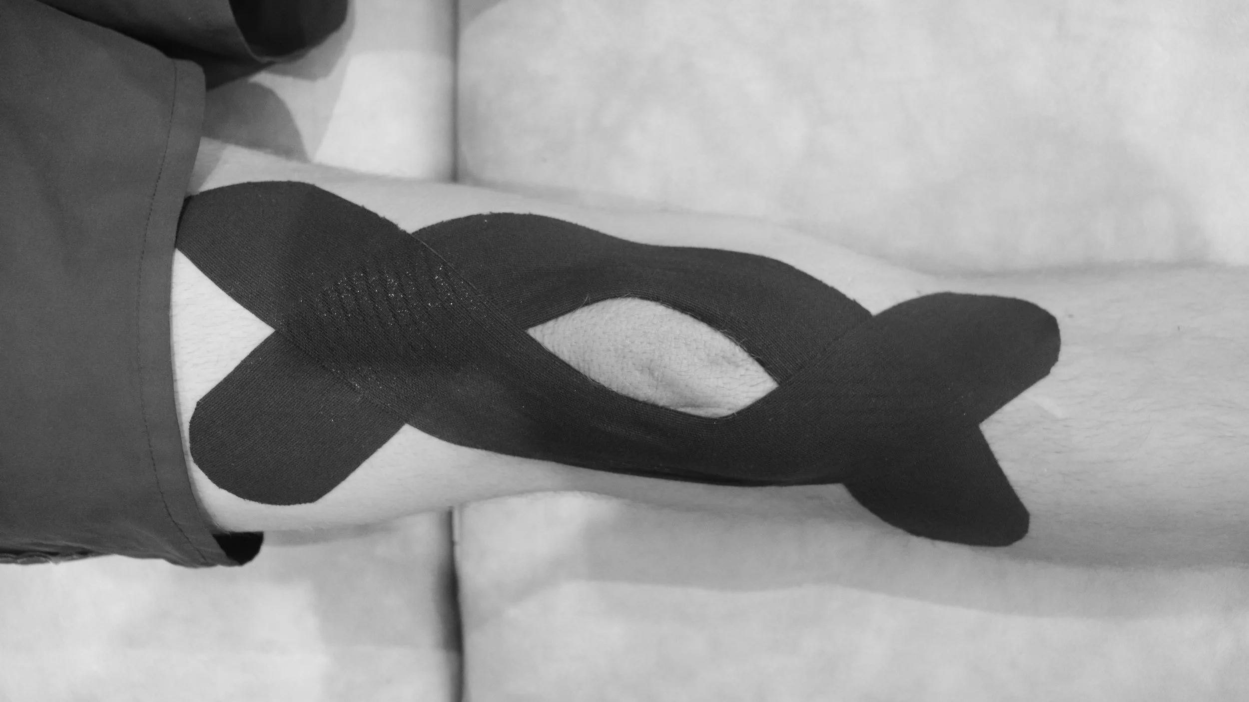 K taping is the use of elastic fabric tape to improve the performance of muscles and add a sense of stability to painful joints. K is short for “kinesiology” which describes the study of human movement. In that sense, the elastic properties of K tape allow joint movement whilst adding the sense of stability to the joint. It is really an exercise in branding, but the elastic nature of K tape contrasts with other types of non-elastic taping that restrict movement.
